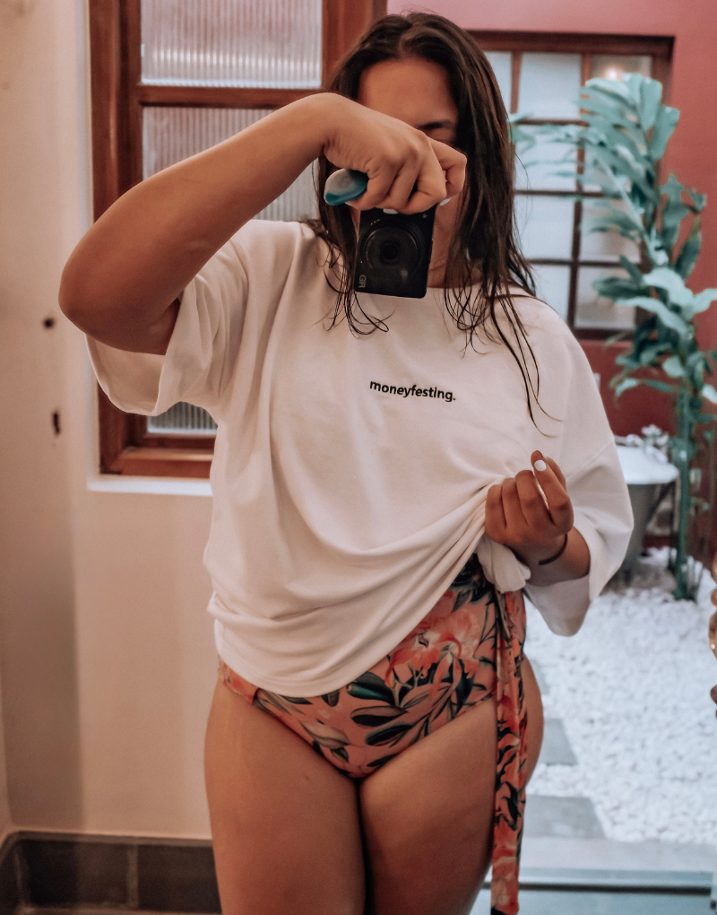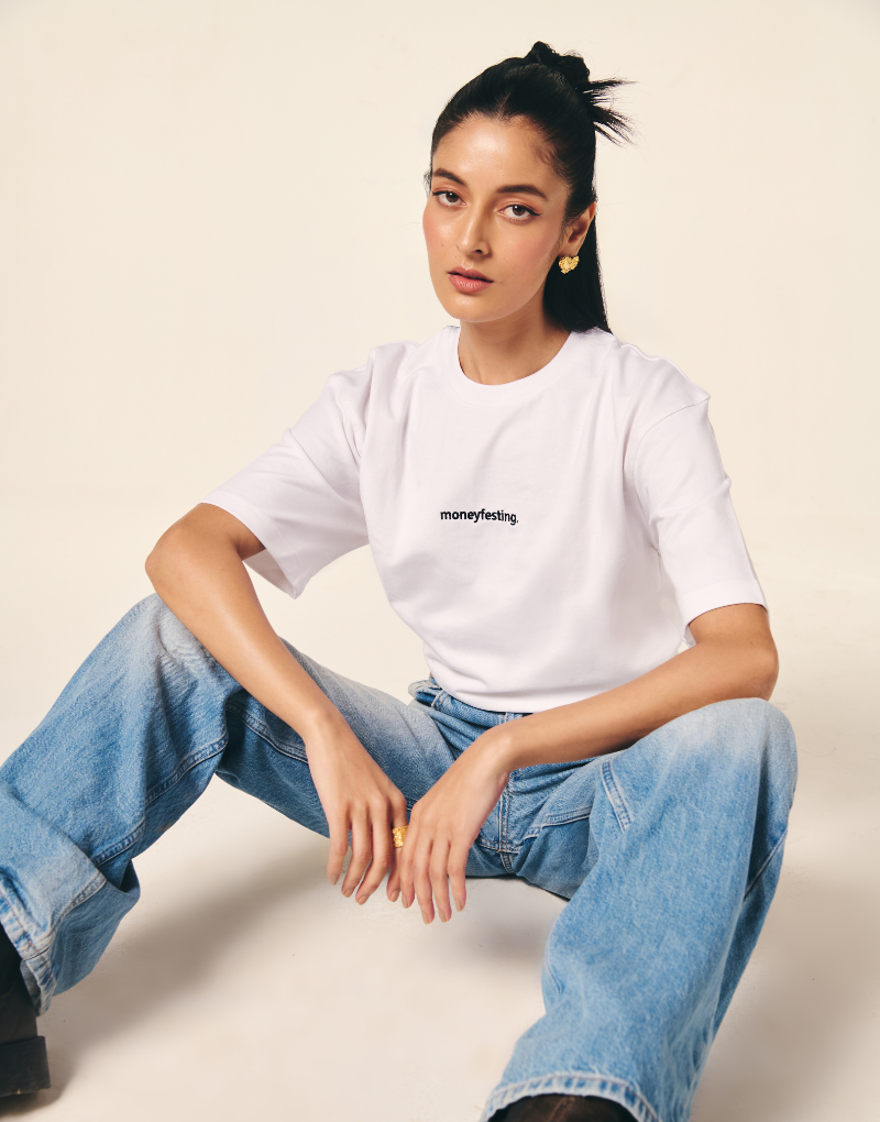 Manifestation, but make it lucrative. This crisp white tee features the playful yet powerful word "Moneyfesting"—for the ones aligning their energy and their income. Made from ultra-soft, breathable cotton, it's perfect for vision-board believers, side-hustle queens, and anyone attracting abundance in style.
